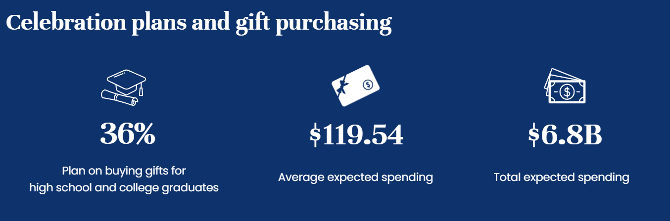 "According to NRF’s annual survey, 36% of respondents plan to buy a gift for a high school or college graduate in 2025. Total spending is expected to reach a record $6.8 billion. Once again, cash is the top gift respondents plan to give."