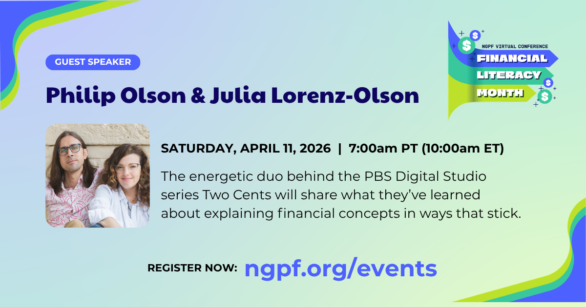 This Saturday, April 11, we're kicking off our free Financial Literacy Month Virtual Conference and we couldn't be more excited to welcome Julia and Philip, the dynamic duo behind PBS Digital Studio's personal finance education series Two Cents. We love their video resources and know many of you use them in your classroom. Check out the three videos most popular with the NGPF teacher network last year, then register today so you don't miss their session!